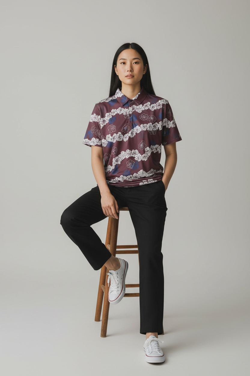 Meaning to uplift or honor, Ho‘onani blends Hawaiian-inspired artistry with modern performance. Crafted from premium performance golf fabric, this men’s golf polo delivers breathable comfort, moisture-wicking technology, and four-way stretch to support smooth, unrestricted movement on every swing.