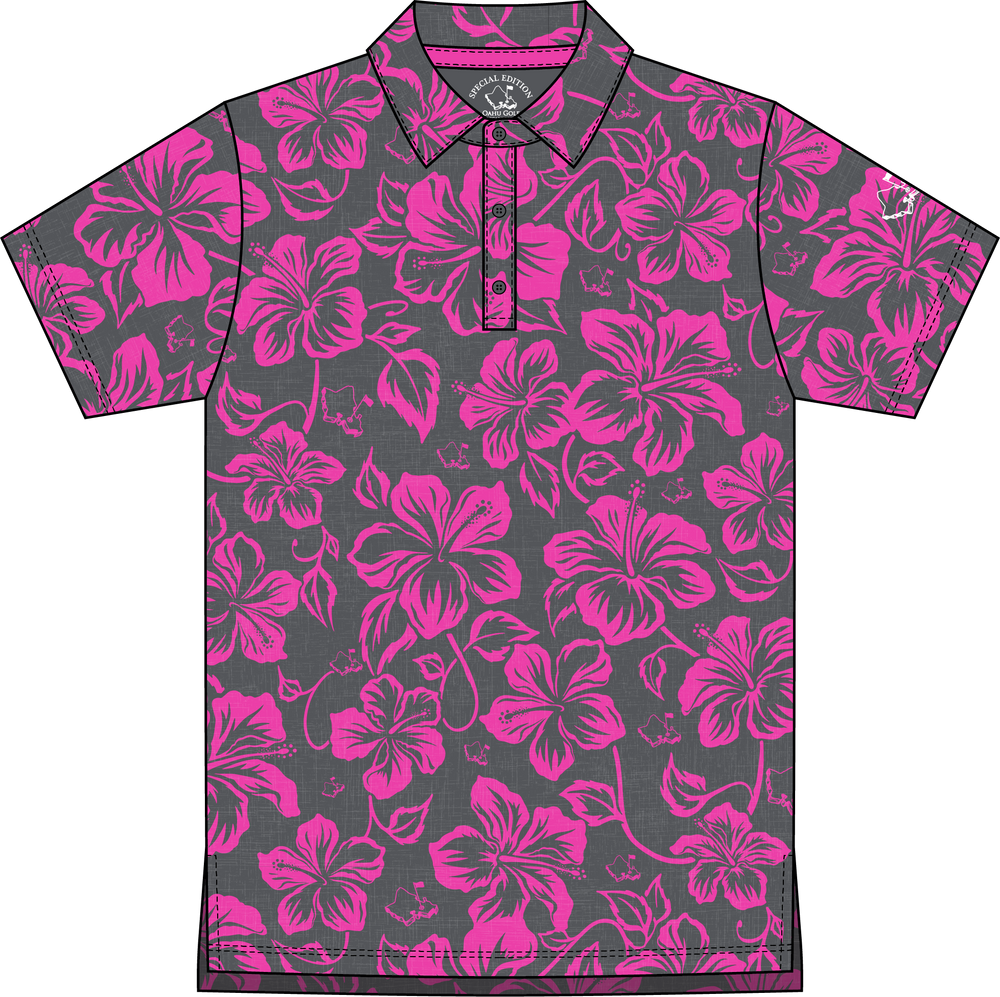 "Hibiscus Pareu" Magenta Gray - OGA Youth Polo - Magenta / Gray