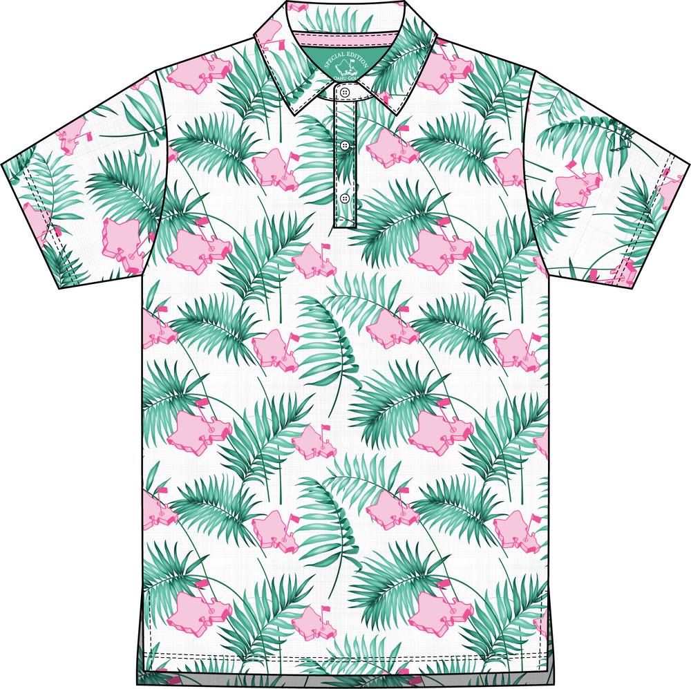 "It's About Time" White Tropics - OGA Youth Polo - White / Pink / Green