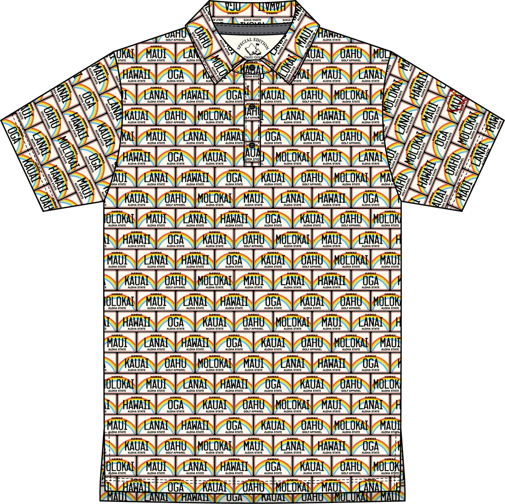 A tribute to one of Hawaii’s most iconic symbols, the LICENSE PLATE - DECADE polo takes inspiration from the state’s instantly recognizable standard-issue license plate. Designed to celebrate the beauty and individuality of the islands, this bold and nostalgic print features elements representing all eight of Hawaii’s main islands. Worn by our OGA ambassador Big Koa, the voice of Island 98.5, this polo delivers performance, breathability, and standout island style - because some designs never go out of drive.
