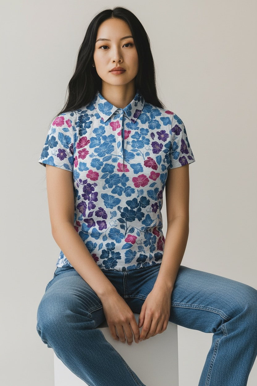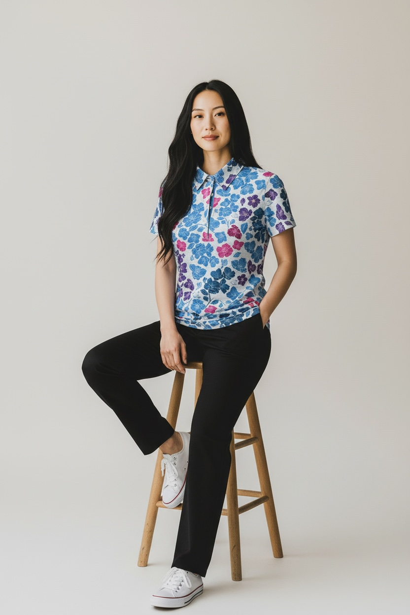 A modern floral golf polo that blends performance, comfort, and standout design.