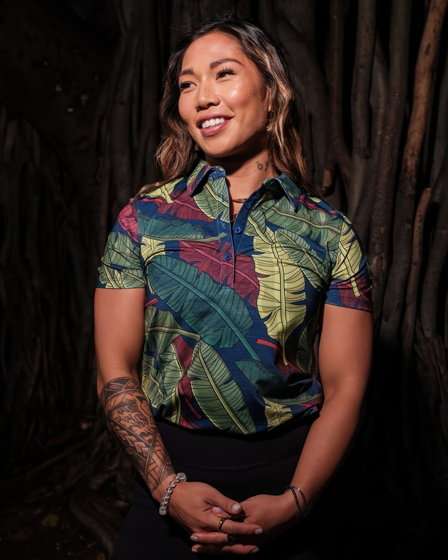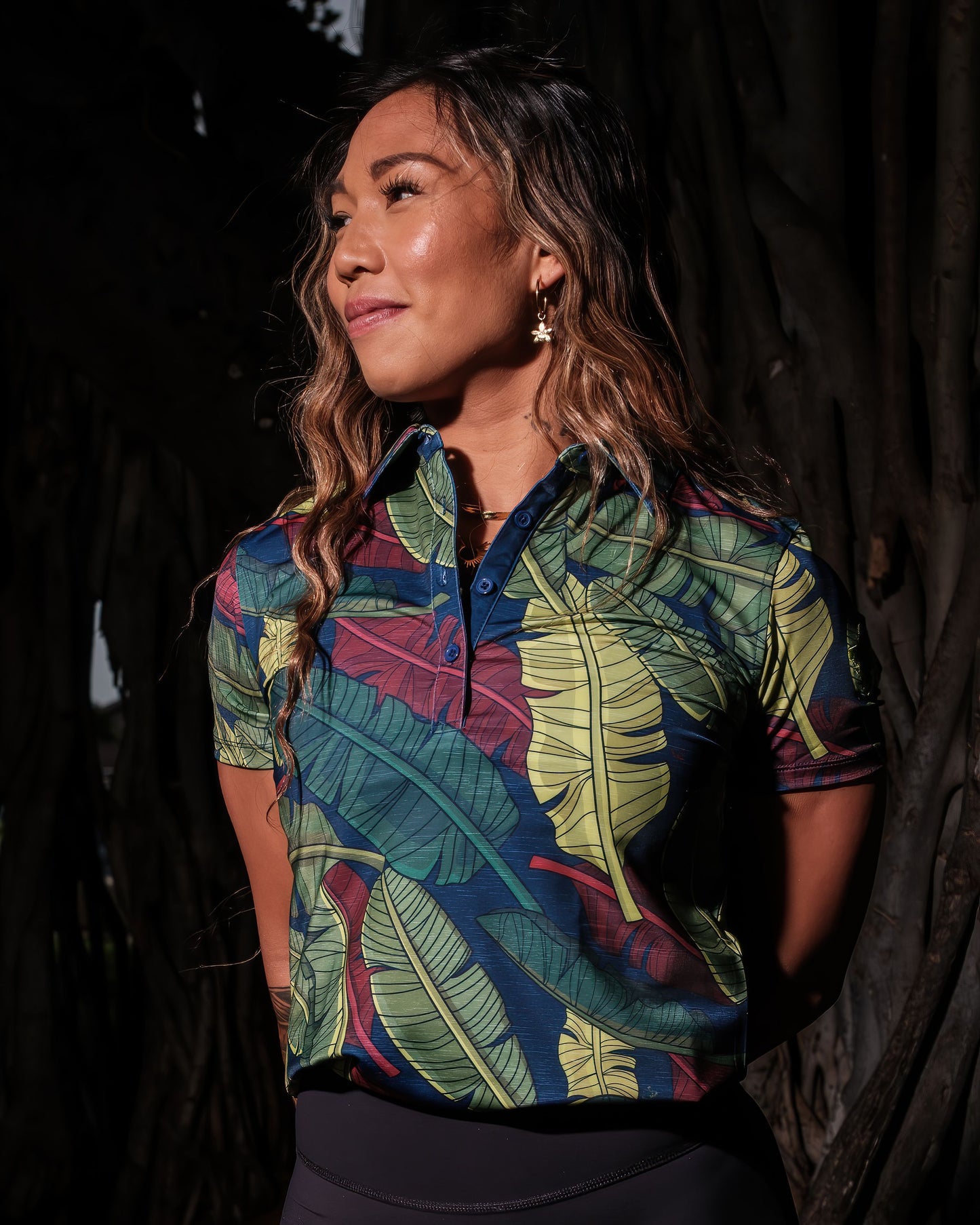 "Banana Patch Mash Up" Jungle Greens - OGA Women's Polo - Multi Greens