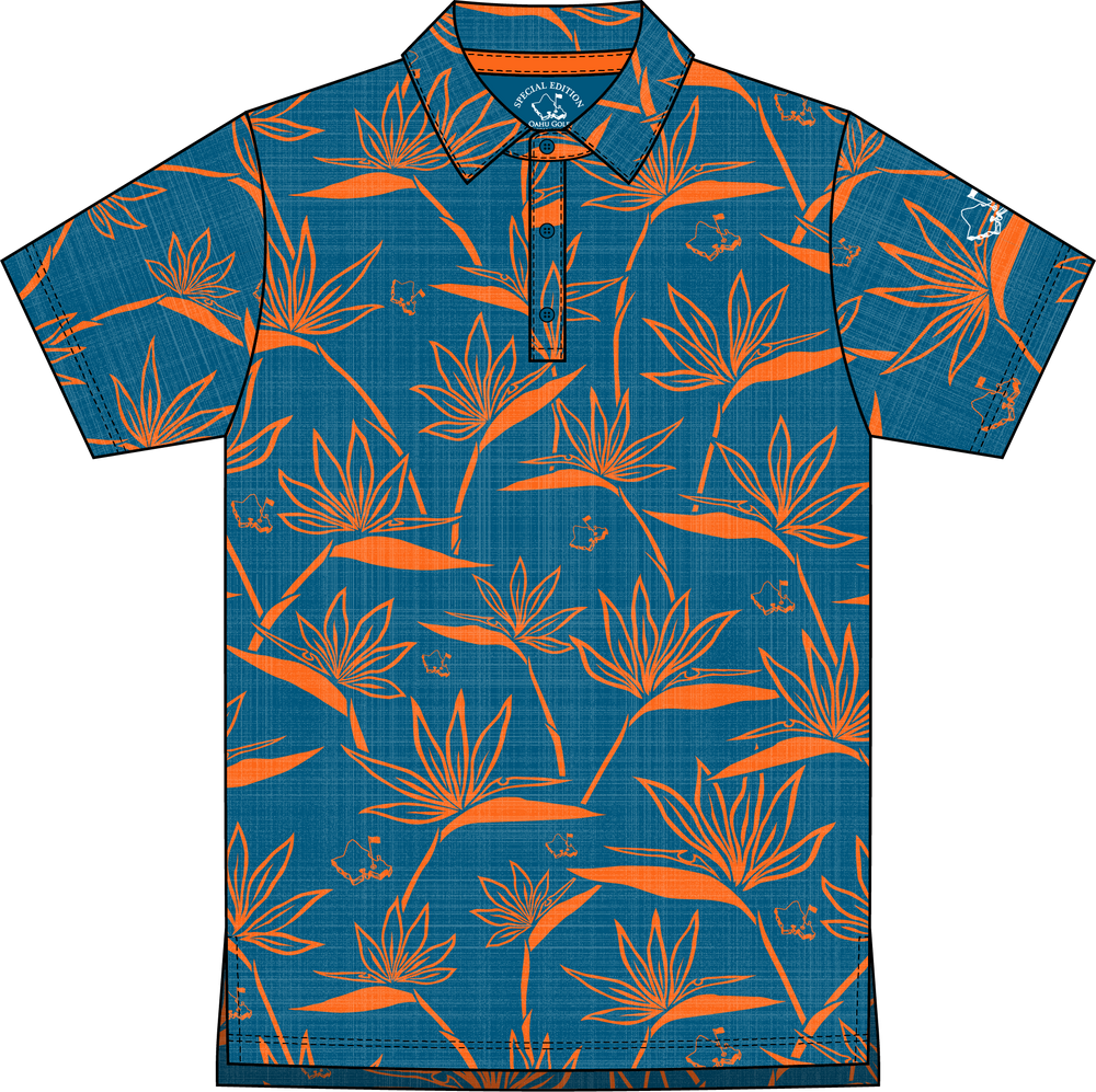The "BIRDIES OF PARADISE" BLUE RUST is where it all began! A groundbreaking debut of our Polynesian "pareu"-inspired prints. Featuring a captivating blend of deep blue and rusty orange tones, this design quickly became a fan favorite. Evoking the vibrant spirit of the islands, this polo combines cultural artistry with modern performance. Lightweight, breathable, and designed for style on and off the course, it’s a piece of Oahu Golf Apparel history that every golf enthusiast will want to wear proudly.