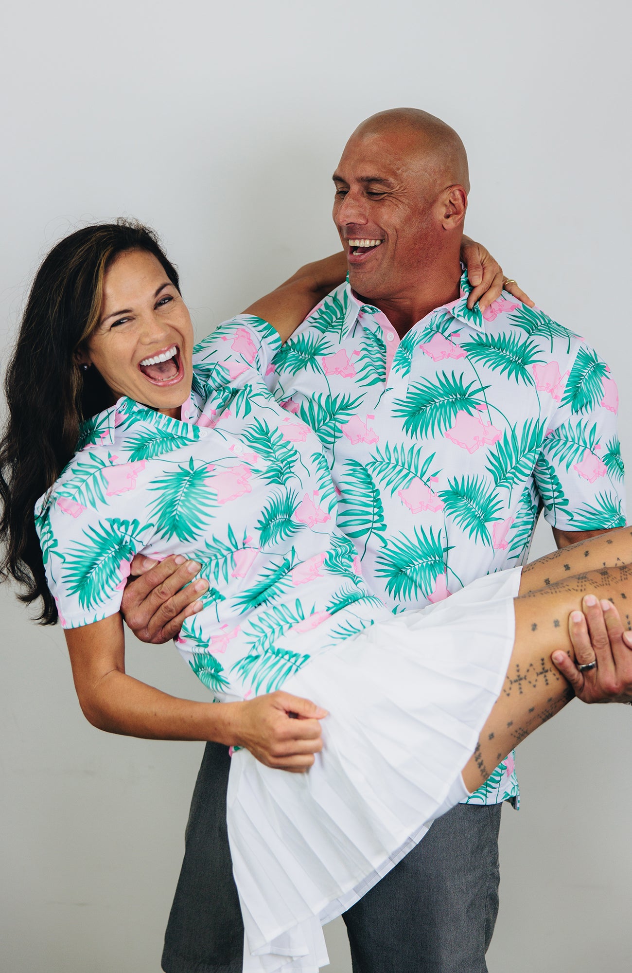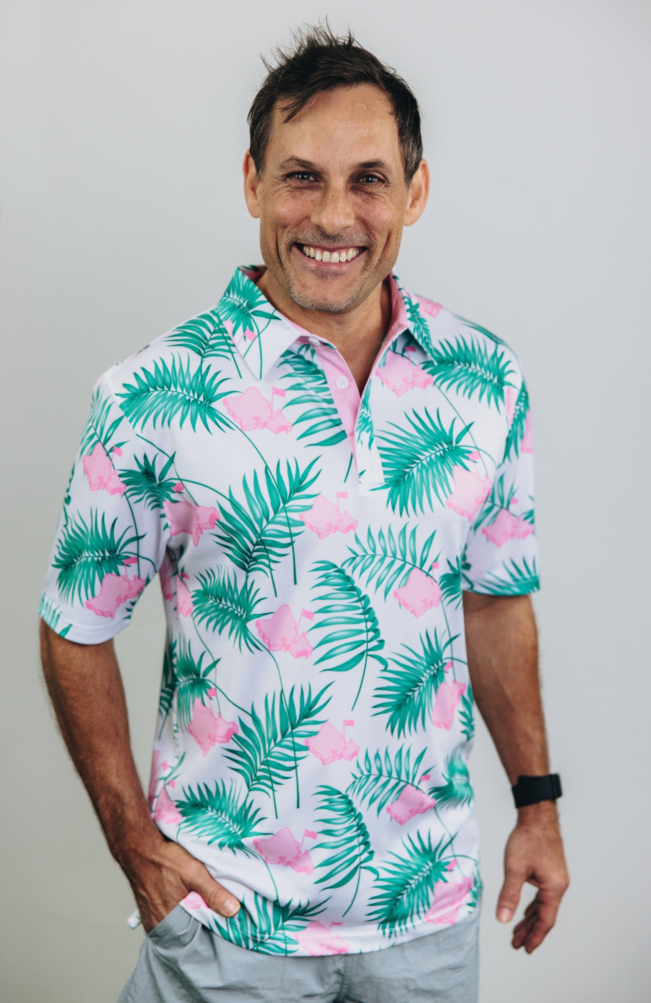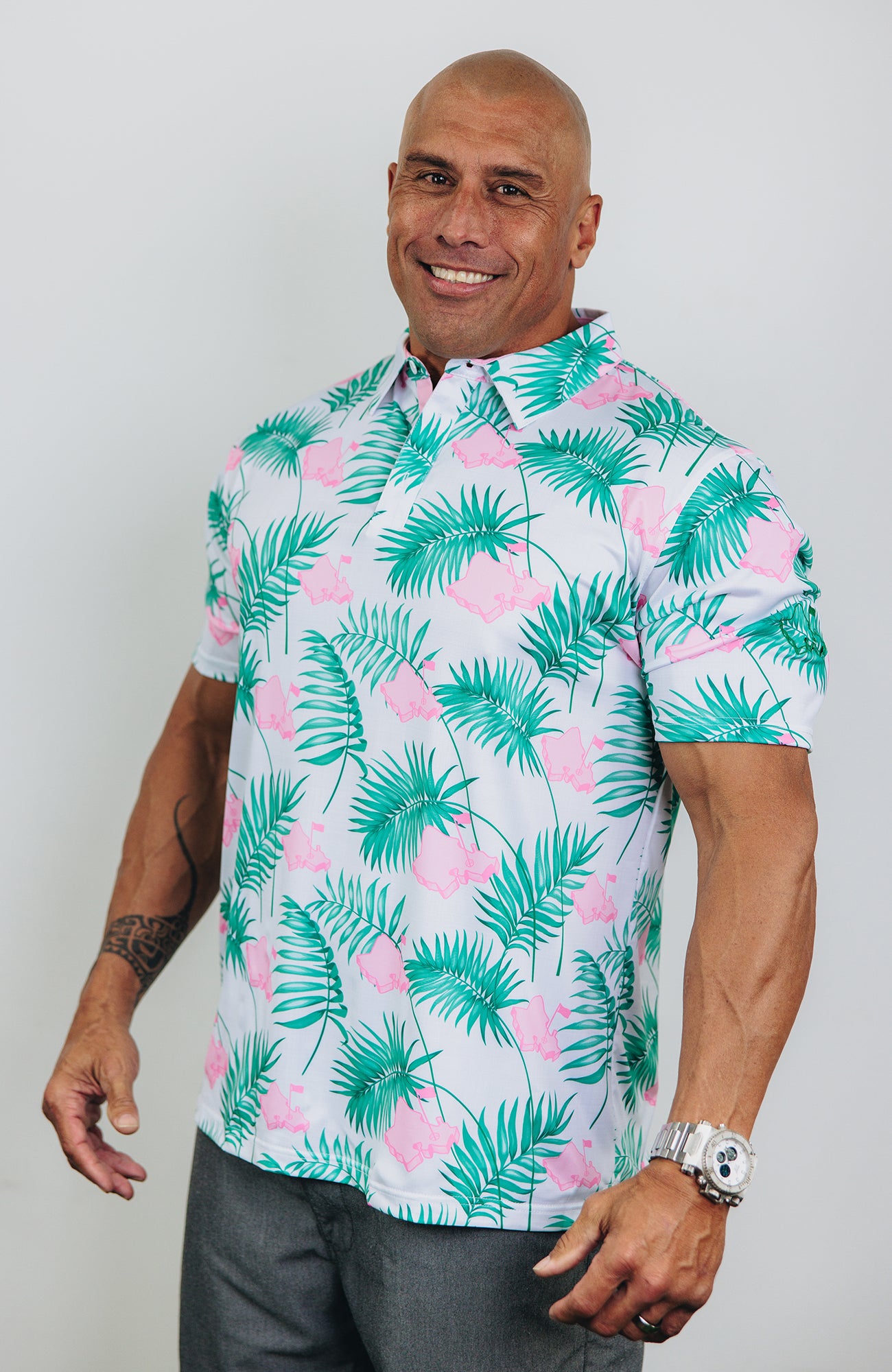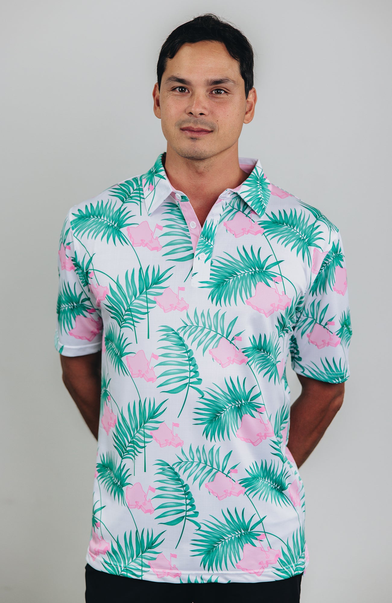 Regular price $ 48.88The "IT'S ABOUT TIME" WHITE TROPICS is a piece of Oahu Golf Apparel history, making its highly anticipated return from our very first polo drop. Featuring a clean white base adorned with subtle tropical accents, this polo exudes effortless island style. The name says it all - after a long journey through development and production, it’s back to elevate your game. Designed with breathable, performance-ready fabric, this polo keeps you cool and confident from the course to the clubhouse. Don’t miss your chance to own a timeless classic!